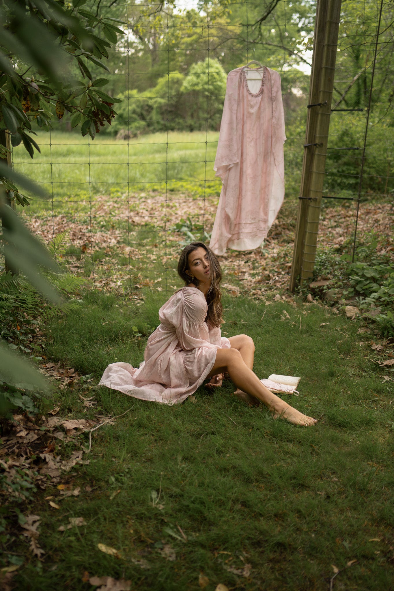 The Calliope robe carries influence from the Victorian era with romantic, drop-shoulder blouson sleeves, a petal-shaped high-low hem and dainty ruffle trim at the neckline. Cinch in the waist with a long ribbon and conceal your belongings inside the pockets.