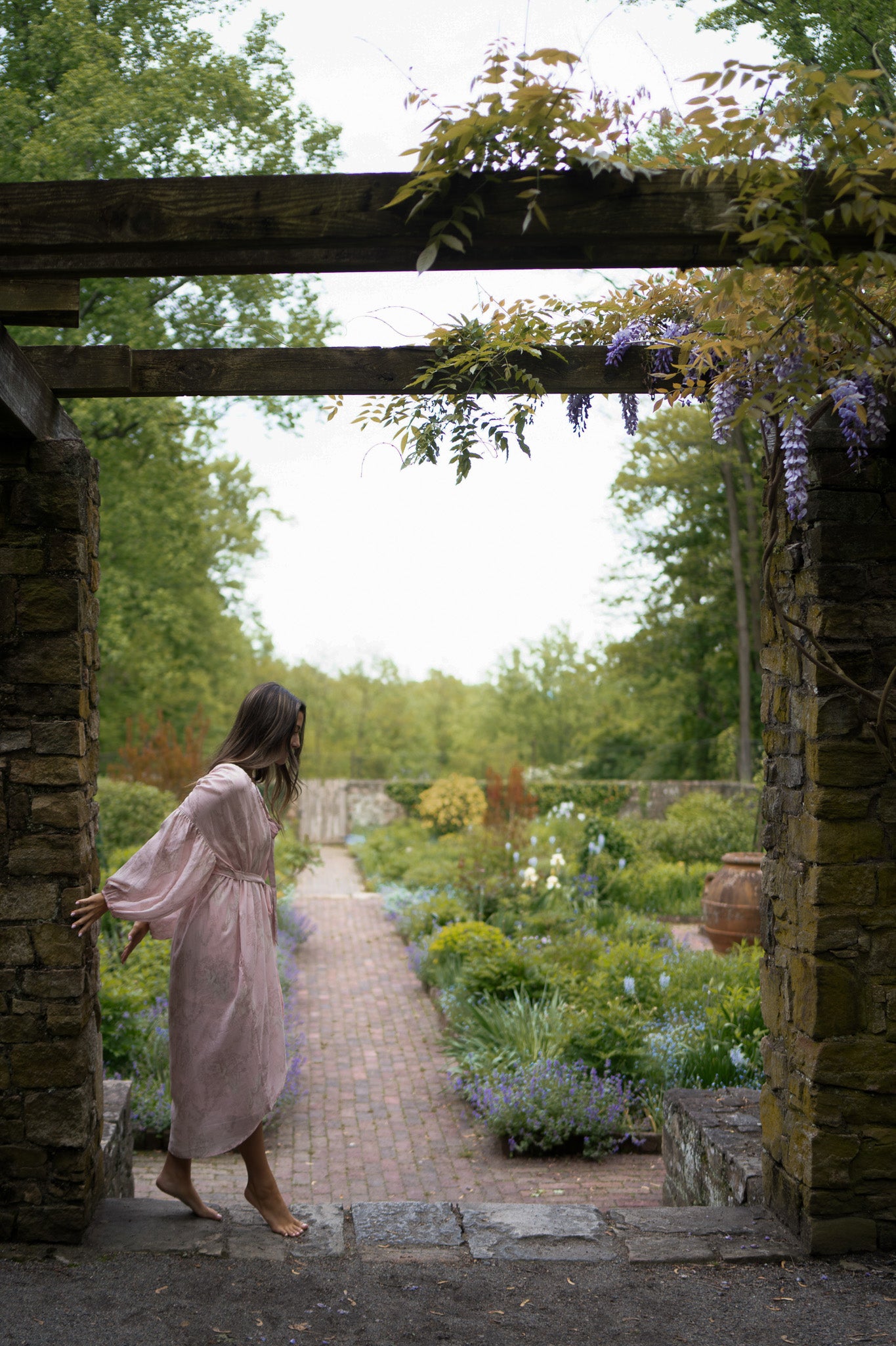 One of my favorite things about this robe is the tulip hem and the blousen sleeves. One small critique I do have is the belt sits a touch too high on the waist when tied. Other than that, it's one of my new favorite things to wear at home.