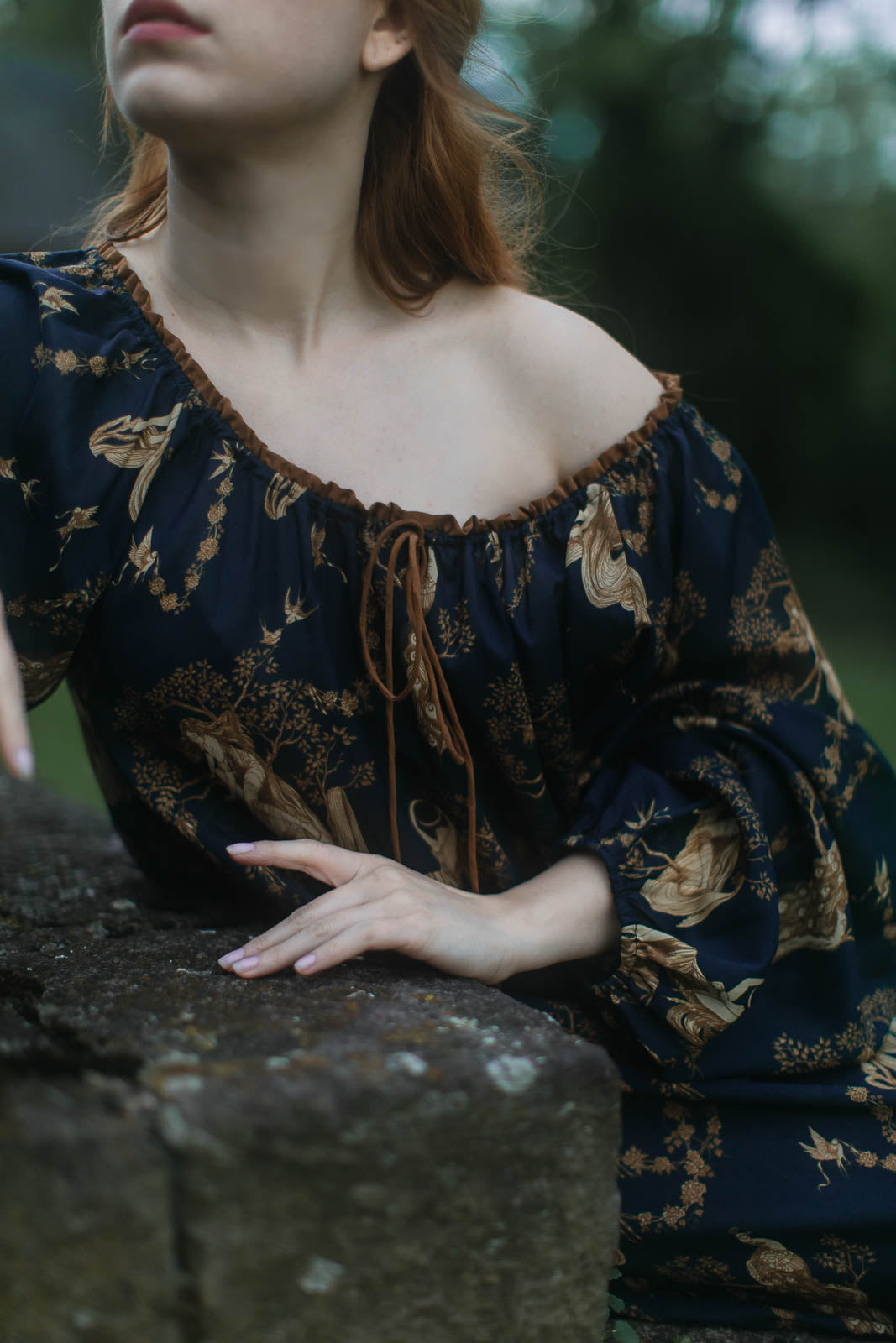 Honestly I can't give enough praise. This is my favorite color for this print and I was over the moon to see it offered in the long sleeve. The sleeves are billowy and soft, adding to the romantic charm. Do not hesitate if you love this color! Cannot wait for colder weather.